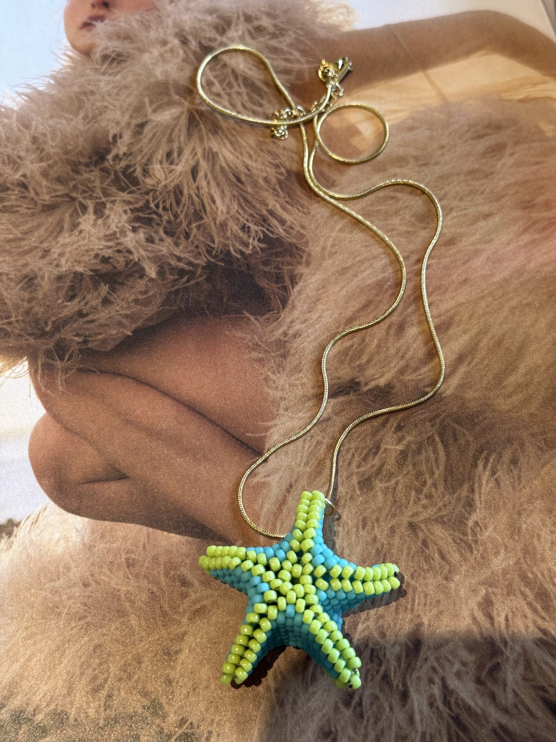 Ketting is van stainless steel, zeester is handgemaakt van de mooiste kwaliteit Miyuki kraaltjes.