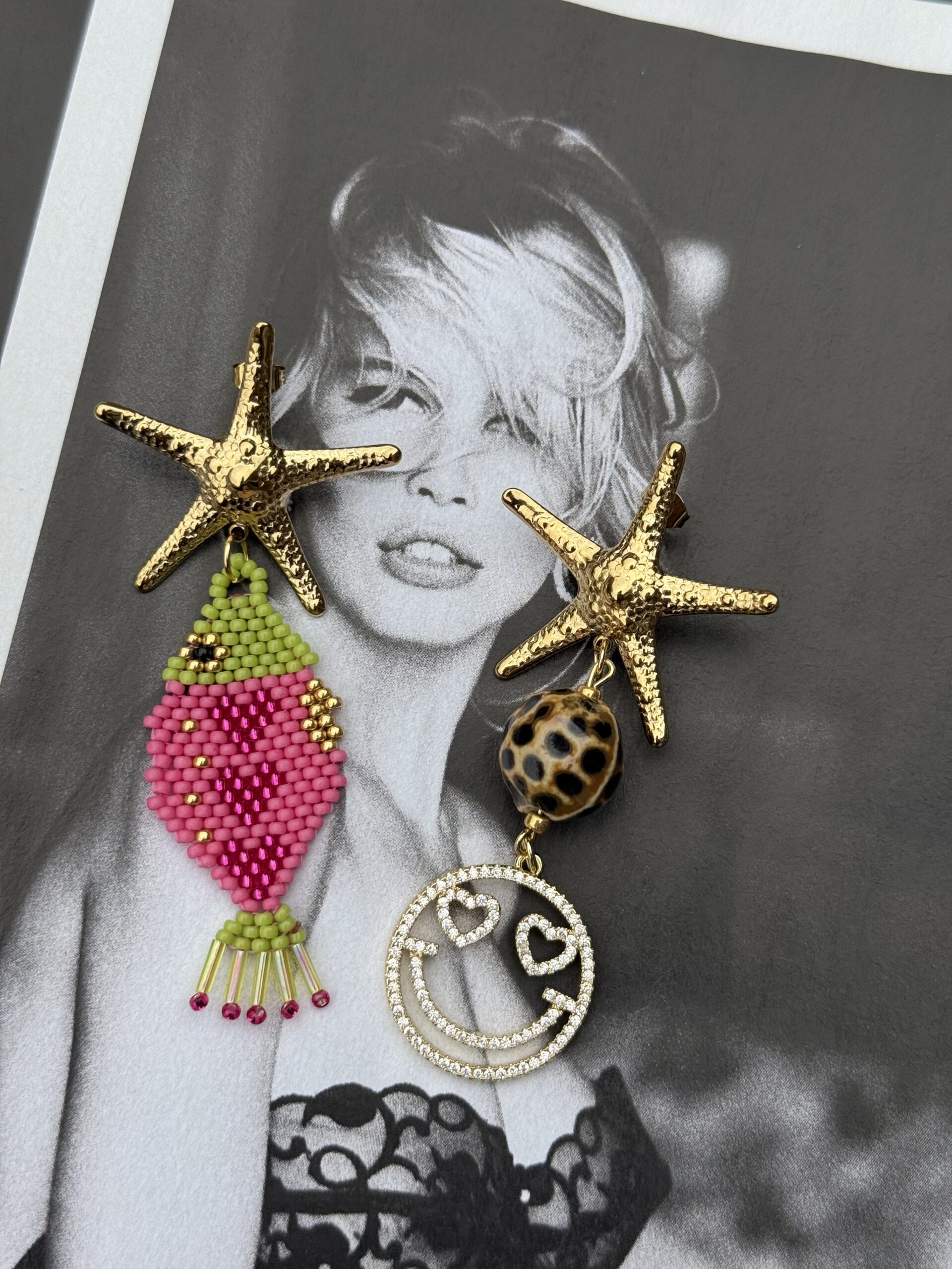 Hoe leuk zijn deze oorbellen, handgemaakt visje, leuke strass smiley.