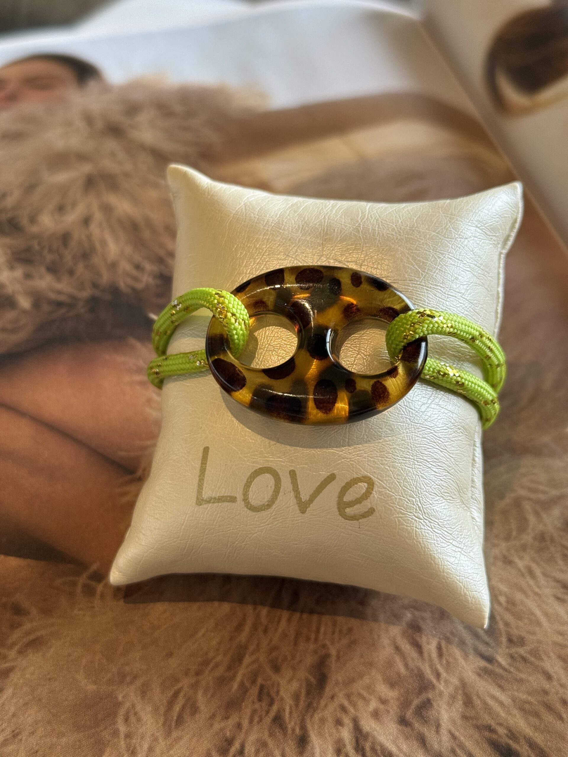 Be the first to review “Coffee bean armband groen tijgerprint”