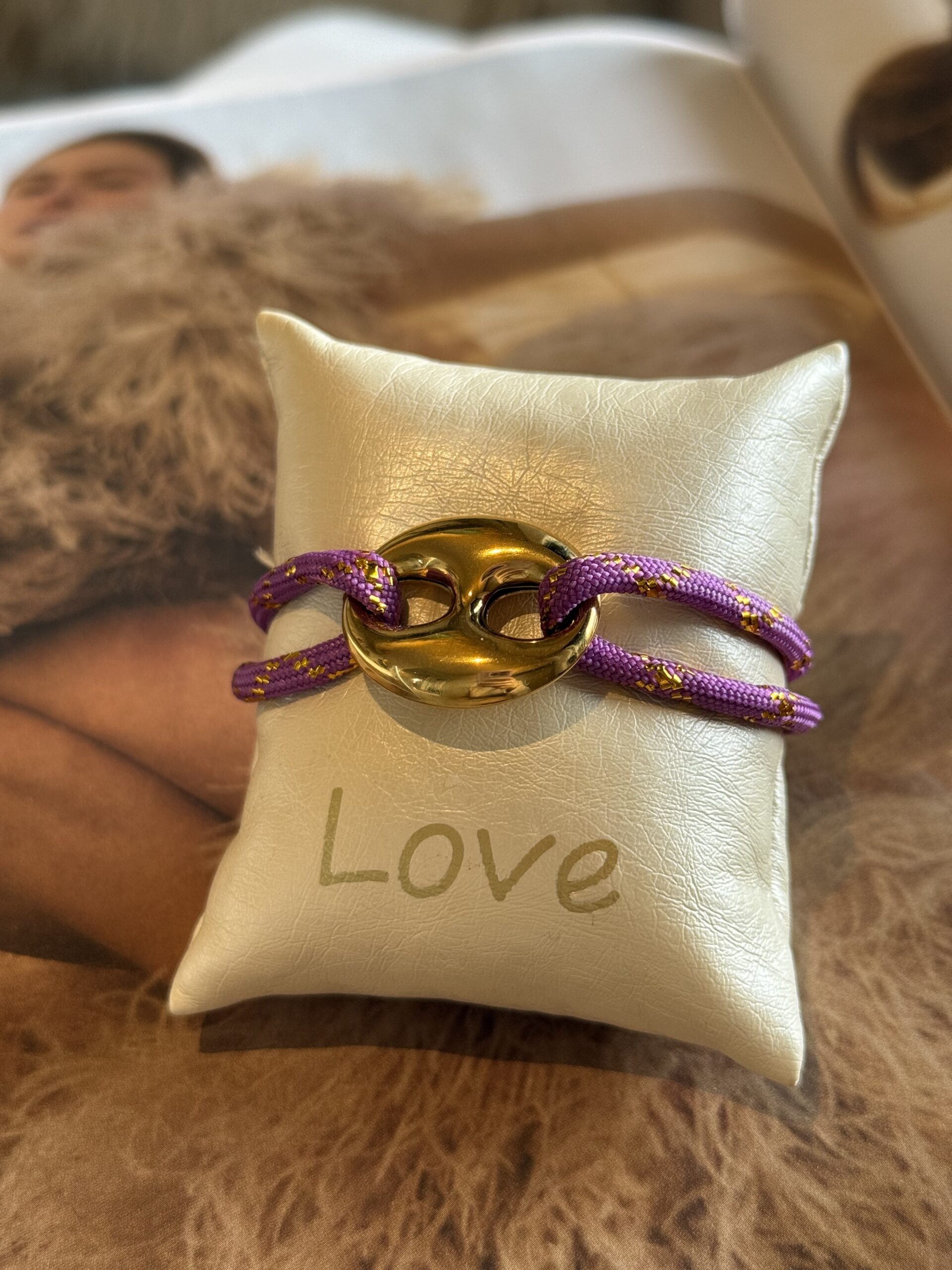 Coffee bean armband paars goud