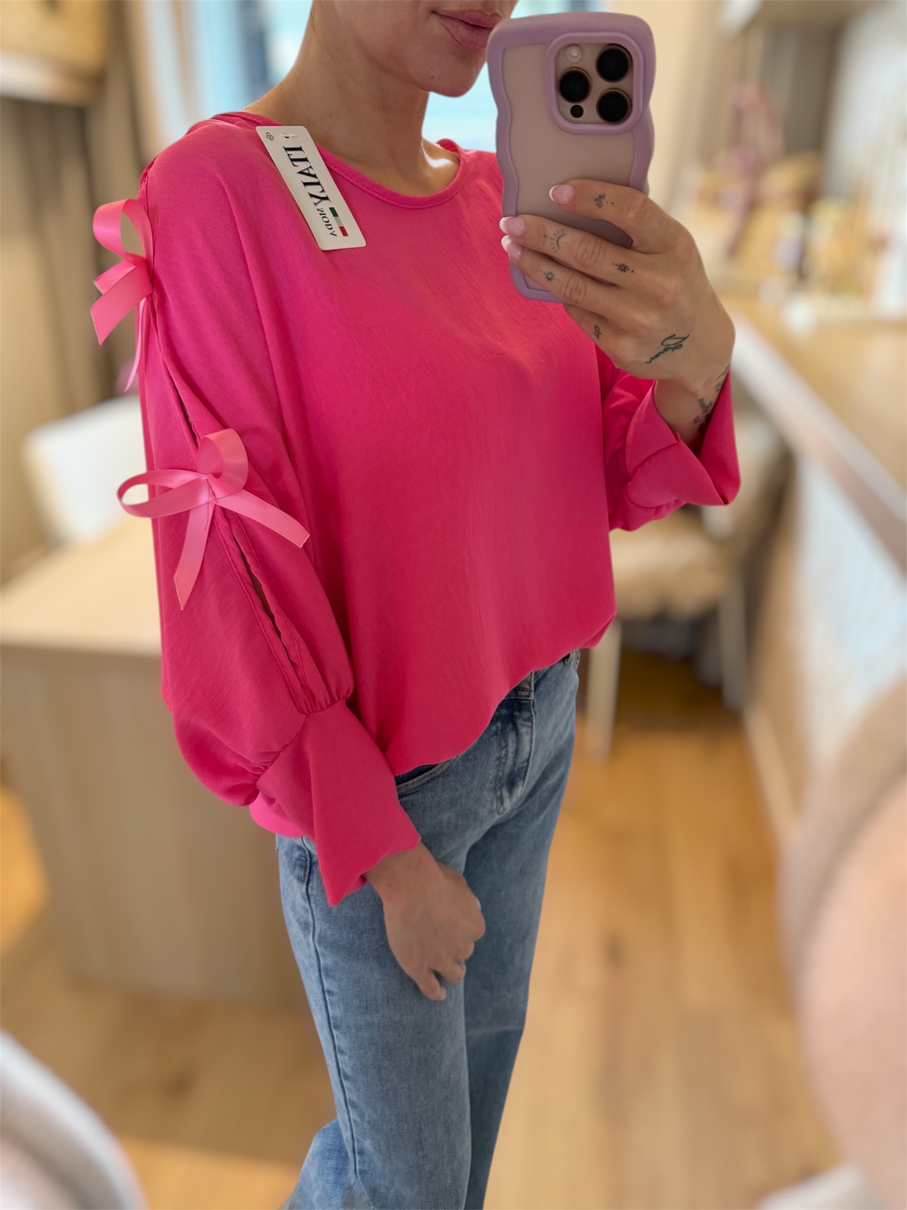 Top met strikken felroze