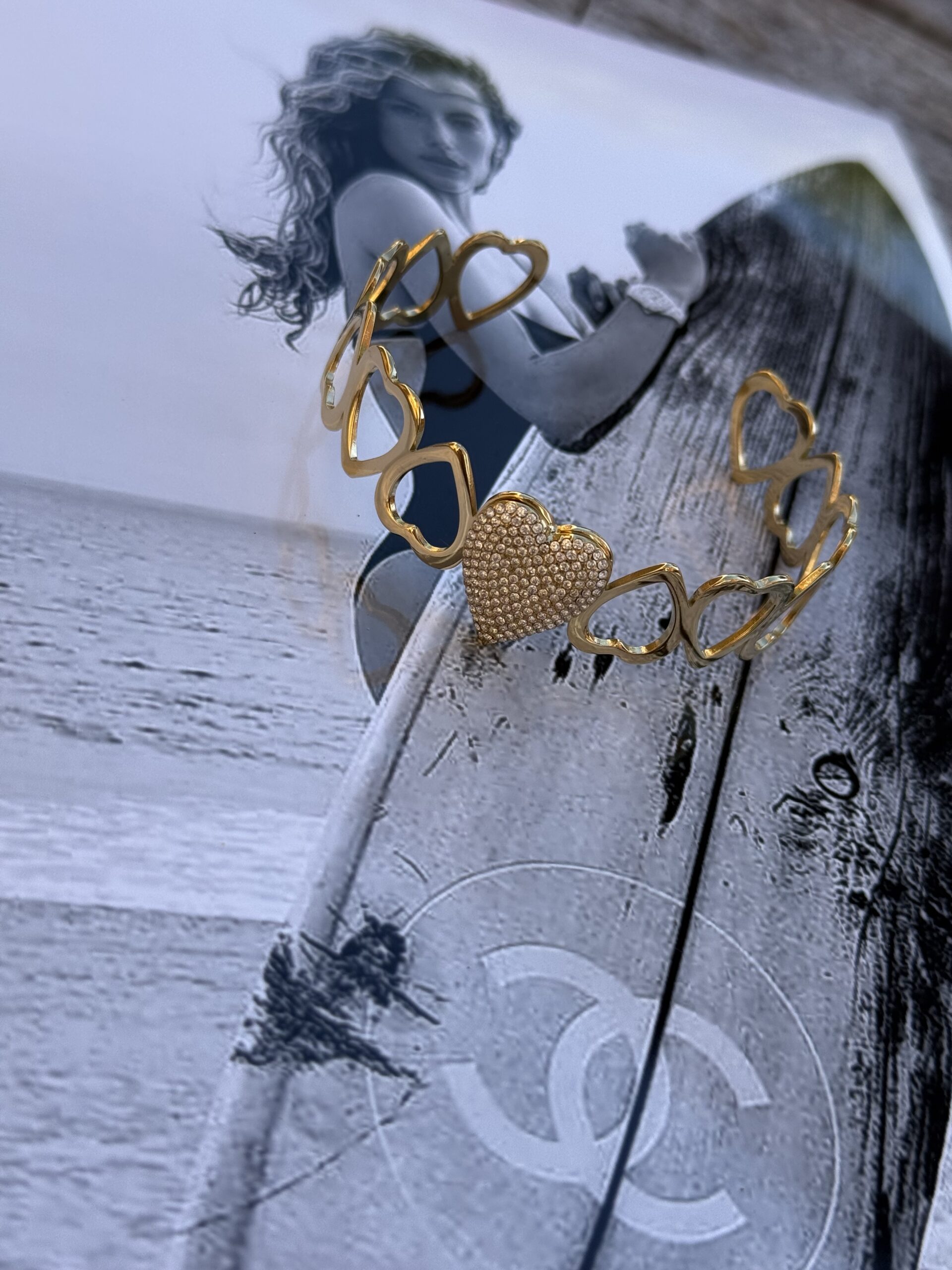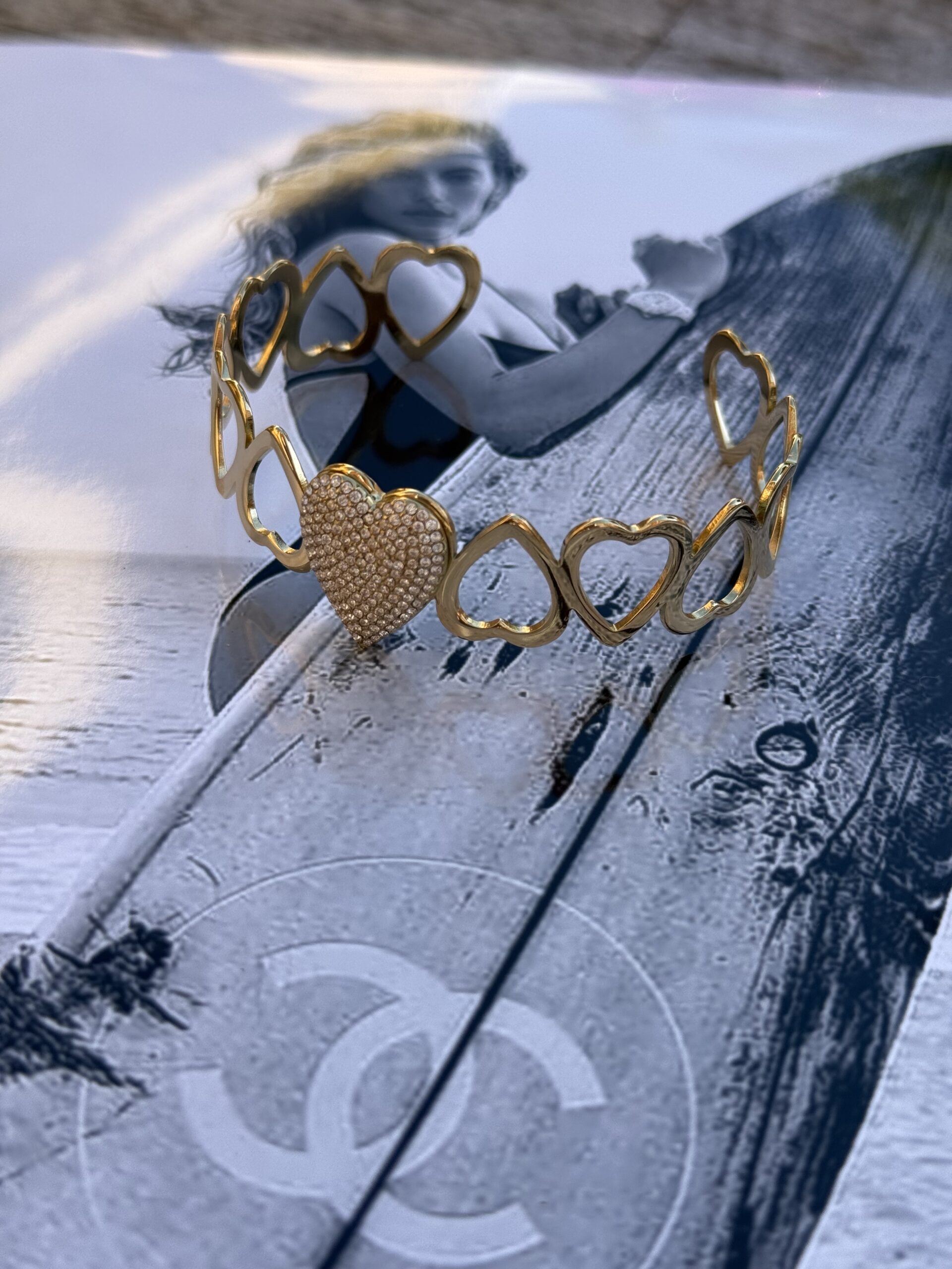 Hoe leuk is deze hartjes armband, met strass steentjes.