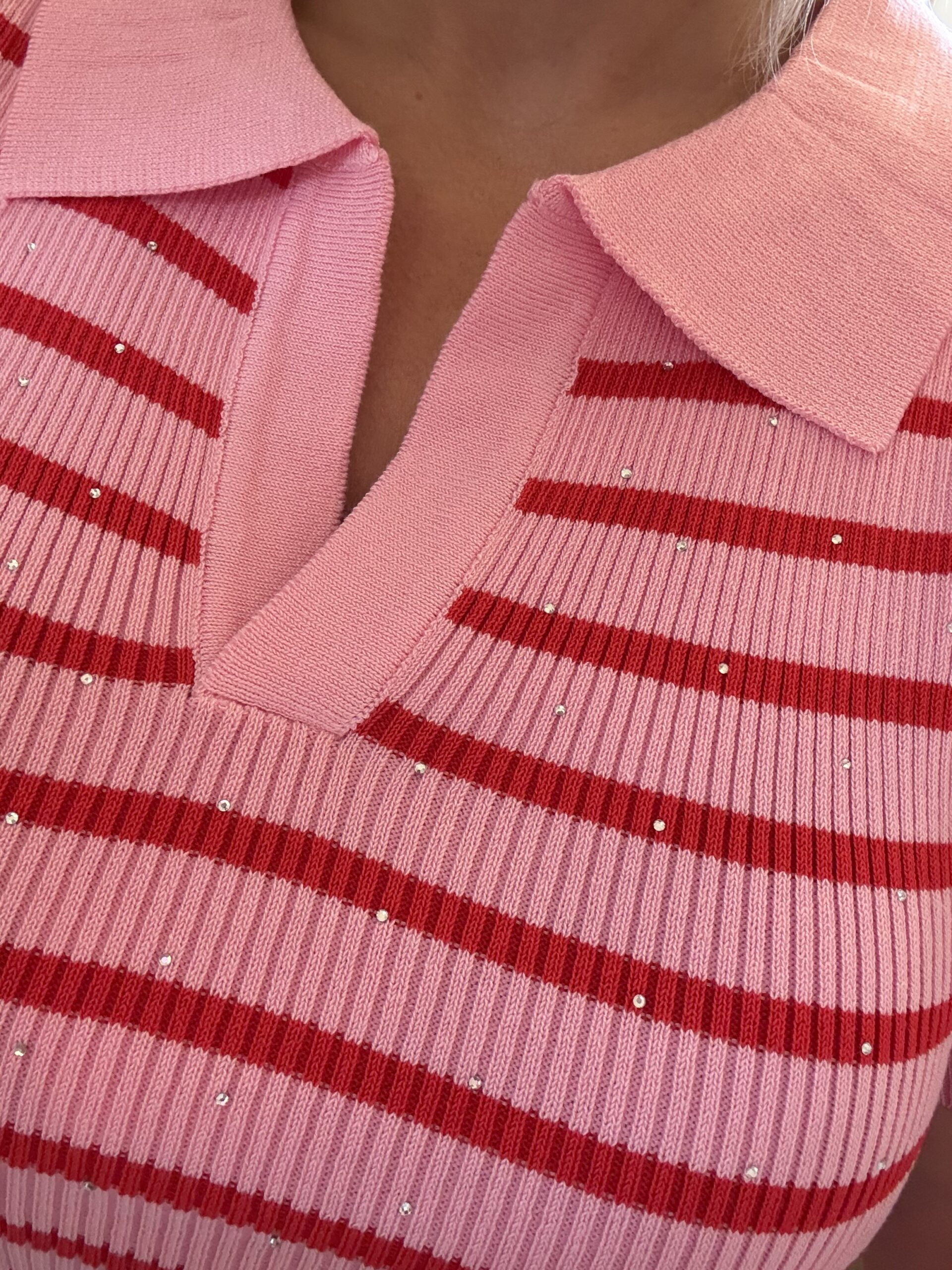 Hoe leuk is dit truitje, roze rood gestreept
