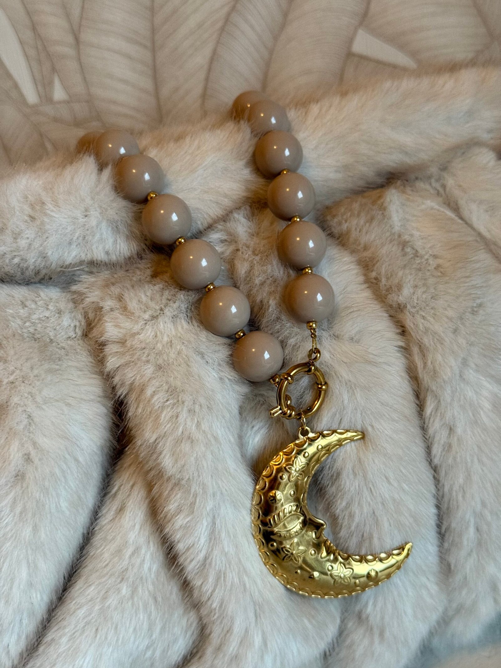 Kralen ketting beige met maan